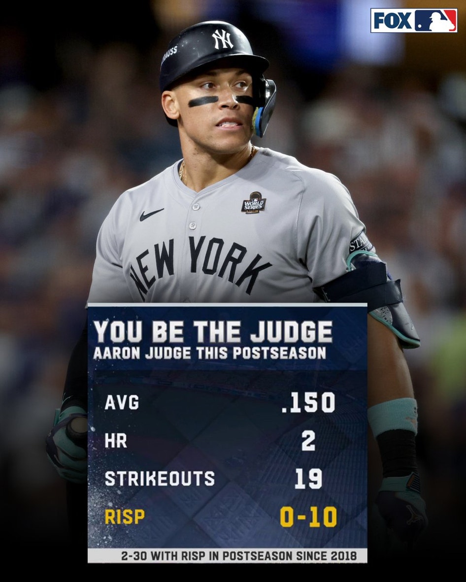 Y cuando los Yankees están desesperados por una ofensiva, como lo han estado en este Clásico de Otoño repleto de estrellas, y uno de los mejores bateadores del planeta no está haciendo su trabajo, los resultados son derrotas consecutivas contra un equipo de élite de los Dodgers que los ha superado en todas las facetas del juego.