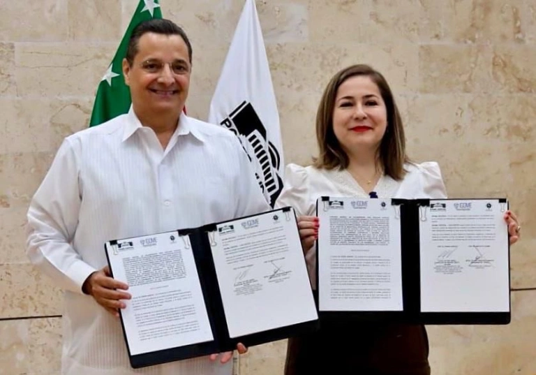 La magistrada presidenta del Tribunal Superior de Justicia del Estado y del Consejo de la Judicatura, María Carolina Canto Valdés y el presidente del IGOME, Bernardo Rivadeneyra Pérez, firmaron un convenio de colaboración para desarrollar e impartir programas académicos en MASC, que incluye esta certificación, todo en cumplimiento con los lineamientos vigentes de la Ley General en Mecanismos Alternativos de Solución de Controversias, publicada el año pasado.