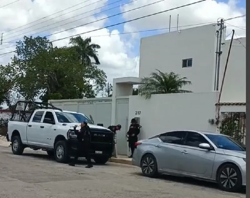 elementos de la Policía Estatal de Investigación (PEI) mantienen de alguna manera segurado un domicilio, el número 171, de la calle 17, de la colonia García Ginerés.