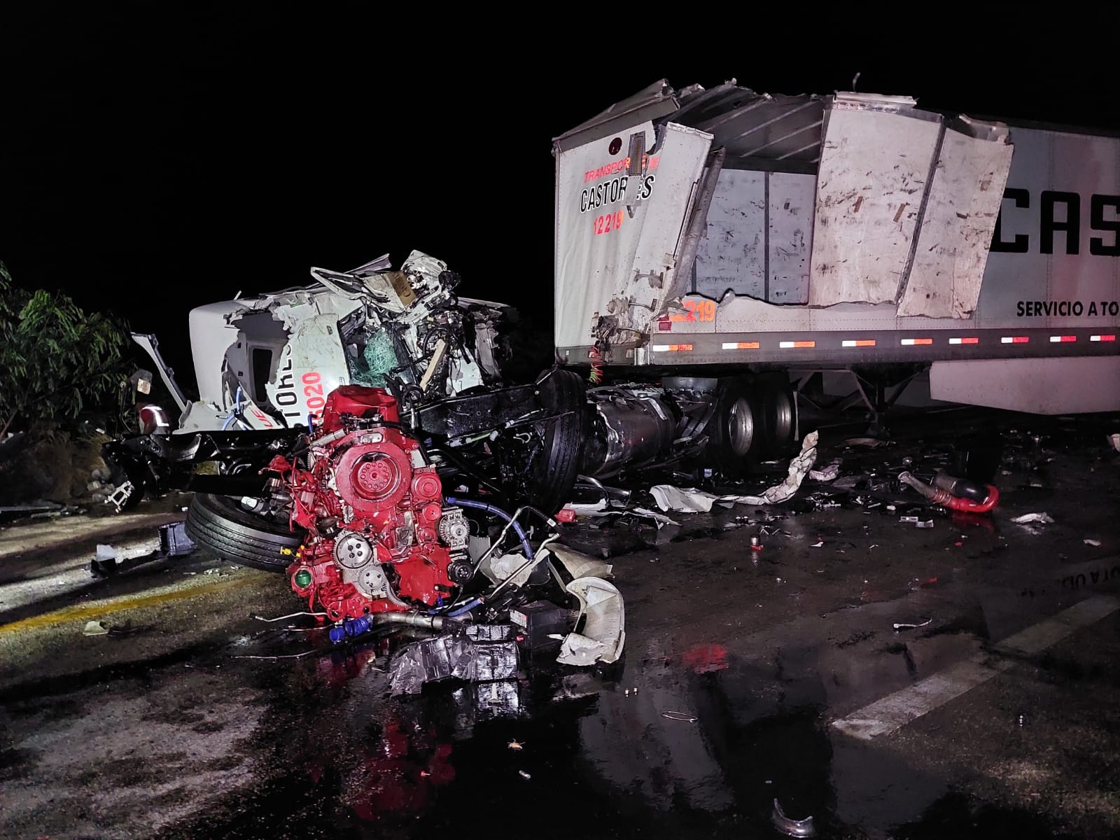 Un aparatoso accidente entre dos tráileres, en el kilómetro 44 de la carretera Isla Aguada-Sabancuy, dejó como saldo dos personas lesionadas y cuantiosos daños.