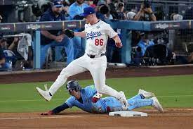 Esos batazos forzaron al timonel Dave Roberts a acudir a su bullpen, primero con el zurdo Anthony Banda, y no resultó. El venezolano Andrés Giménez se fajó en el turno, trabajó la cuenta completa y luego disparó un sencillo al izquierdo que impulsó a Varsho. Clement luego anotó con un rodado de Ty France. El inning continuó con Blake Treinen en el montículo, quien permitió sencillos remolcadores a Bo Bichette y Addison Barger para ampliar la ventaja a 6-1.