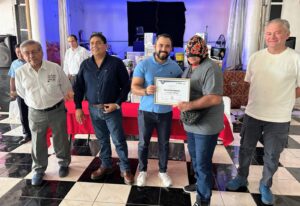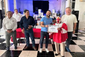 Ivan Herrera Rosiles subdirector de Deportes acompañado de Jorge Martín Pech, presidente de la Comisión encabezó el festejo realizado en la sala de fiestas ‘Cecilia’, en el Barrio de San Sebastián.
