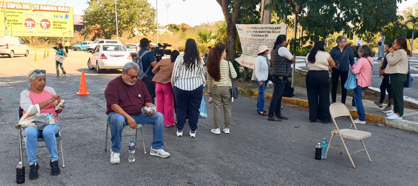 La protesta de un grupo de Jubilados y Pensionados de PEMEX demandan a la paraestatal que regala millones de barriles del crudo a su par cubano, servicio médico de calidad y piden que se realice de inmediato una operación a un compañero afiliado que está grave de salud, por lo que están bloqueado un carril de la avenida Correa Racho y Cámara de Comercio, en la “glorieta de las Haciendas”, desde la 9 de la mañana. El caos vial no se dejó esperar. Se registraron algunas confrontaciones con los automovilistas/ Dahemont/ Gran Jefe Pluma Blanca…